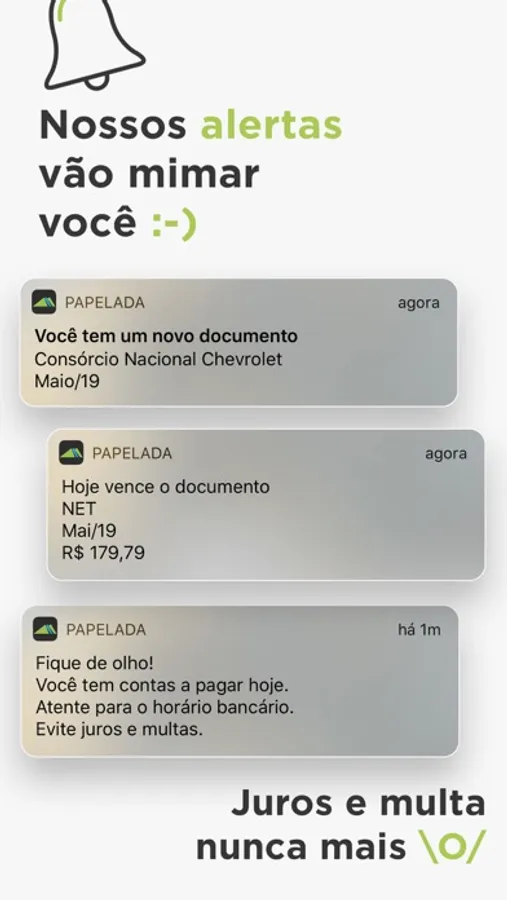 ◉ Pagando juros e multa por esquecimento ou não recebimento de uma fatura? Deixe com a gente. Nossos alertas estão a postos para te ajudar a evitar isso!