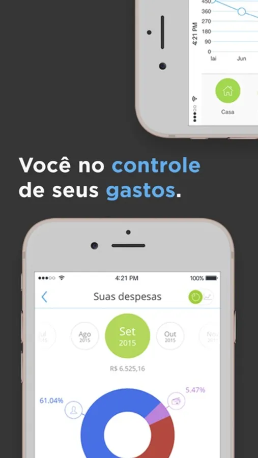 ◉ Acha que está gastando demais? Use nosso gráficos e acompanhe suas finanças pessoais de forma simples e intuitiva. Tudo automático, sem você fazer nada.