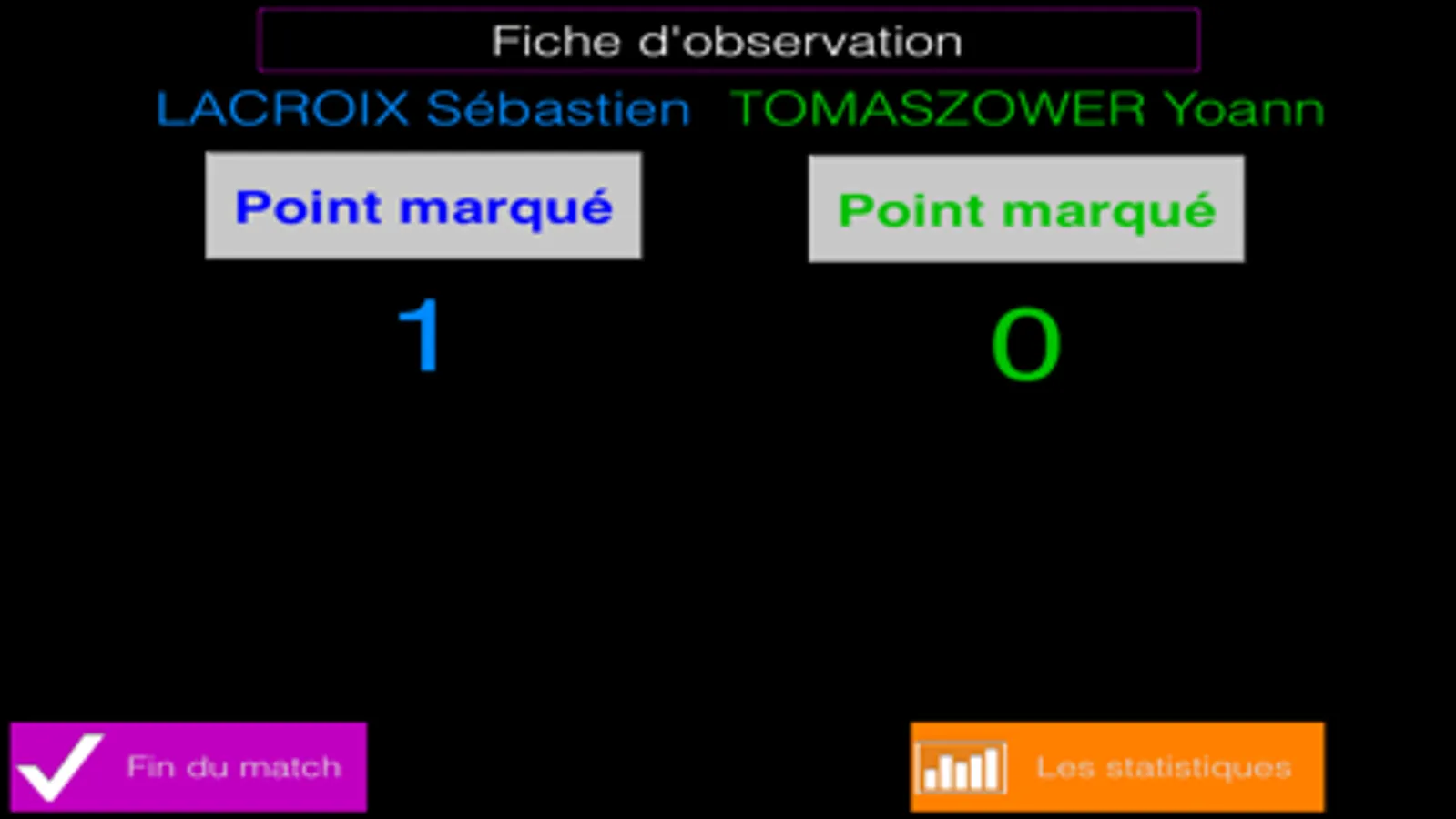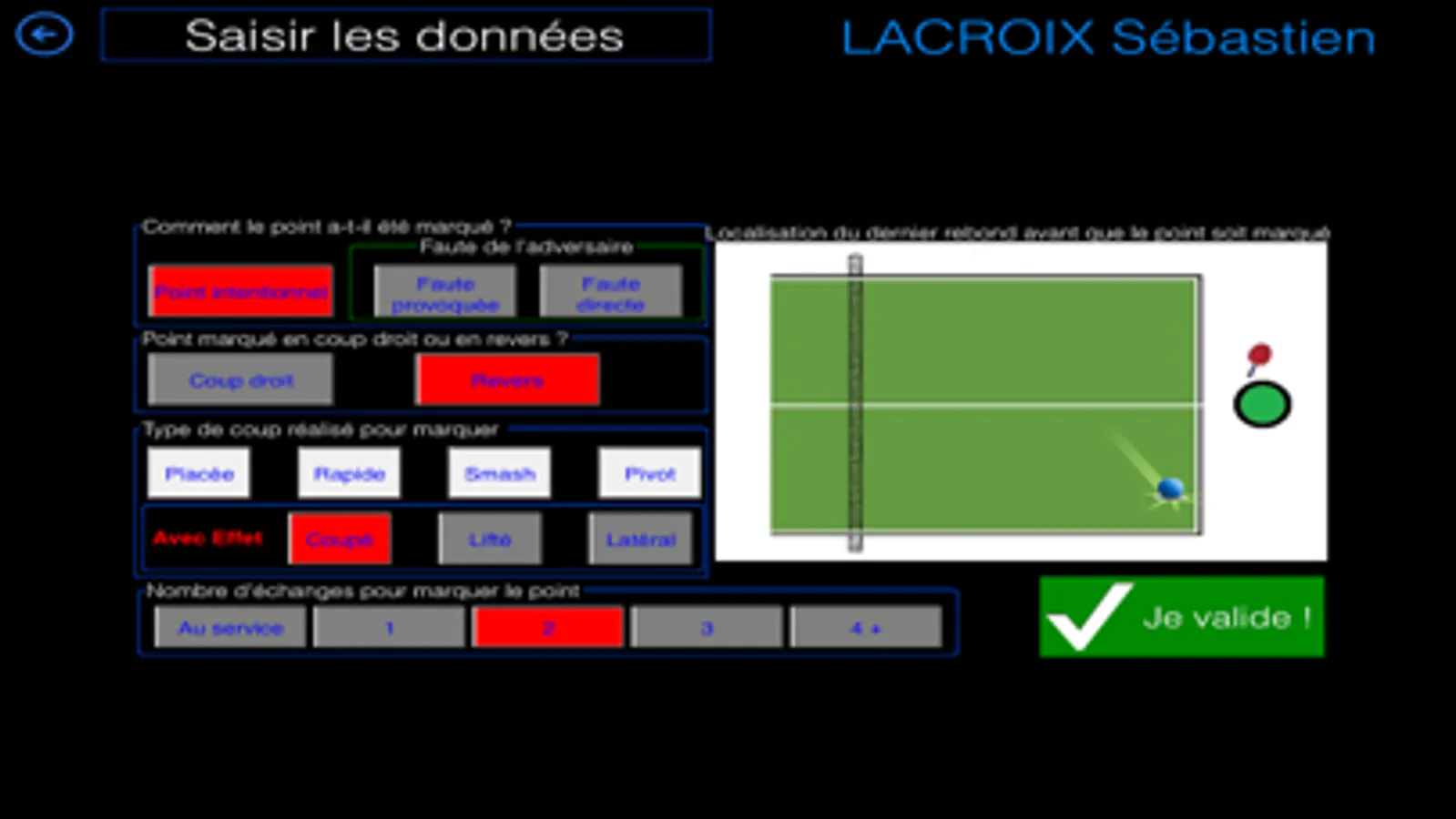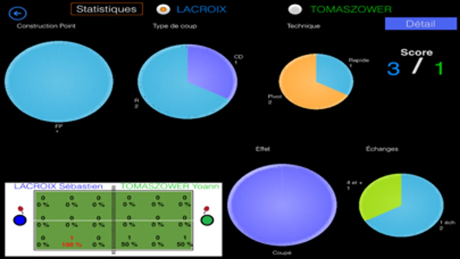 Cette application dédiée à l'enseignement de l'EPS permet d'analyser pendant, ou à l'issue d'un match de tennis de table, le profil de jeu de chacun des joueurs (types de coups utilisés, effets, zone de jeu sur la table, nombre d'échanges…)