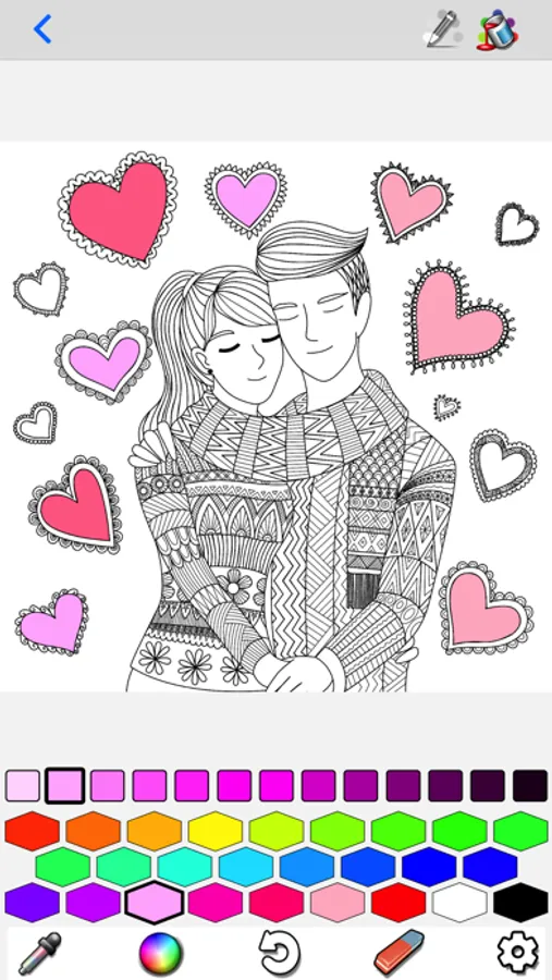 You can fill with a tap, or paint with strokes. There is an unlimited color palette to choose from, and different brush widths available.