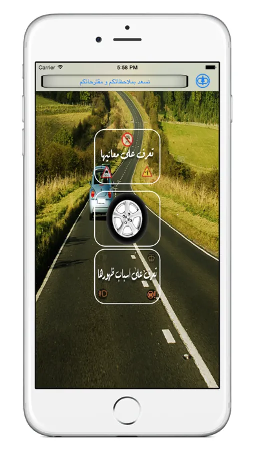 وكذالك الرموز التى تظهر في شاشة السياره ( الطبلون ) و كذالك تتعرف في هذا التطبيق على اشارات المرور ومعانيه