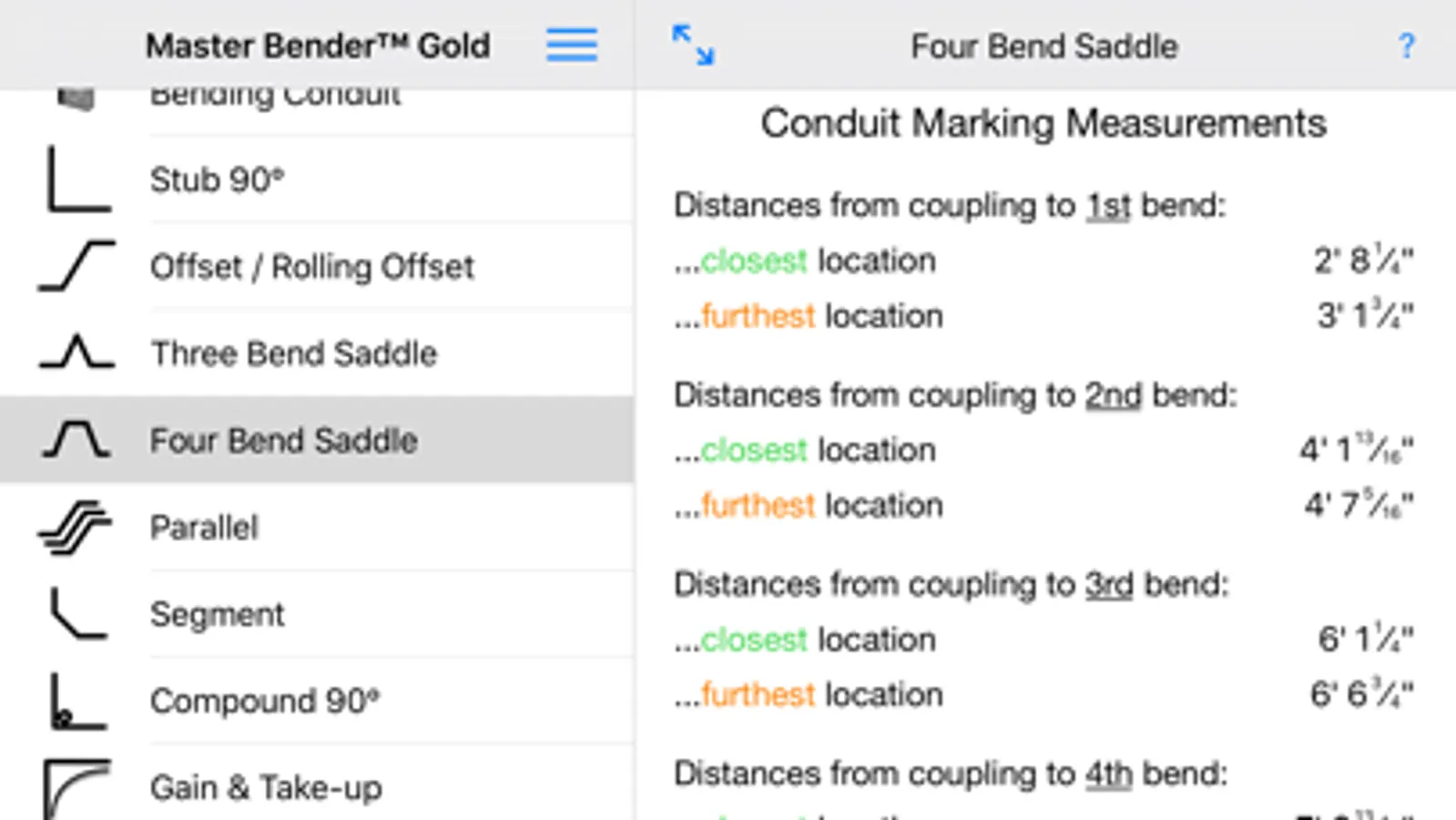 Master Bender Gold is the industry's leading and most precise conduit bending app for iPhone and iPad.
