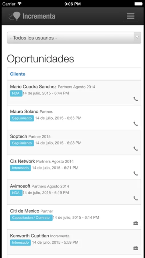 Esta es la aplicación móvil para Incrementa CRM, para poder usarla necesitas tener una conexión a Internet activa.