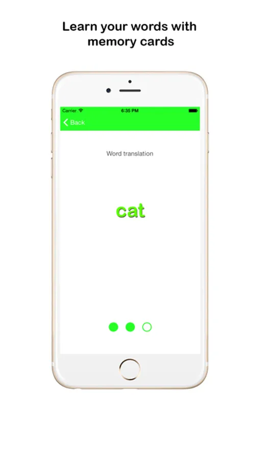 - You can learn your words with memory cards - you have list of your words, where you can tap on any of them and get translation instantly.