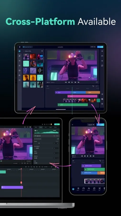 - PIP (Picture in Picture): add multiple layers of video, images, stickers, special effects, text, etc.