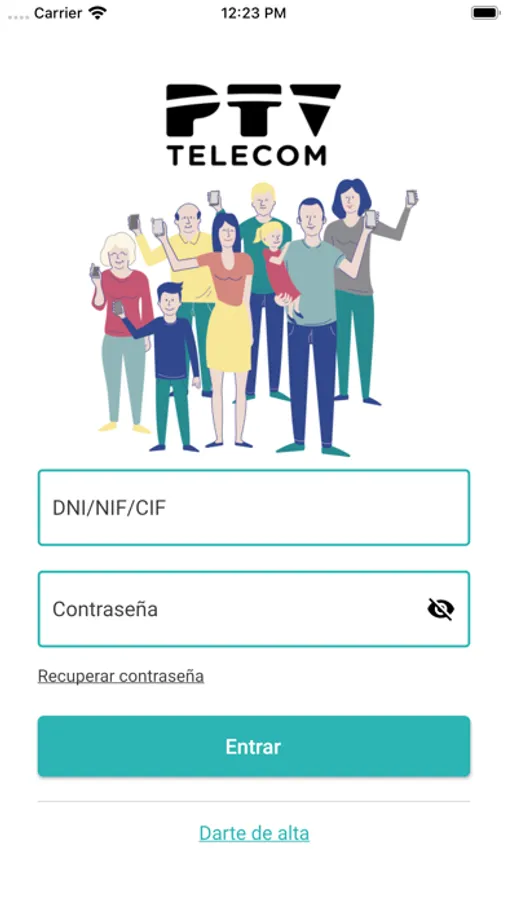 Para poder usar la APP sólo necesitas ser cliente de PTV Telecom. Si ya dispones de un usuario y contraseña podrás acceder en el momento que la instales. También ponemos a tu disposición en la pantalla de acceso enlaces para darte de alta o recordar tu contraseña en caso de que la hayas olvidado.
