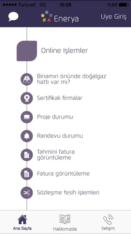 Enerya’nın abone beklentilerini değerlendirerek hayata geçirdiği bu uygulama sayesinde hem her türlü bilgiye anında ulaşabilecek hem de online doğal gaz ve elektrik işlemlerinin tümünü kolayca yapabileceksiniz. Bunların yanında doğal gaz ve elektrik faturalarınızı hesaplayarak tüketiminizi kontrol altında tutma şansını elde edeceksiniz.