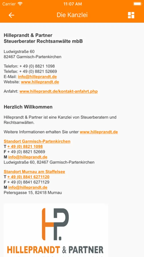 Diese kostenlose Kanzlei-App ist ein Service von Hilleprandt & Partner Steuerberater Rechtsanwälte mbB.