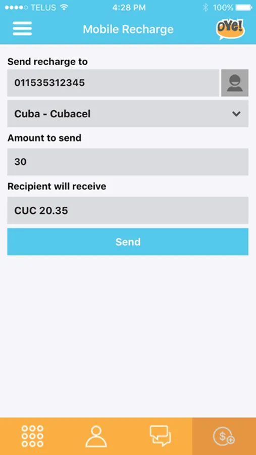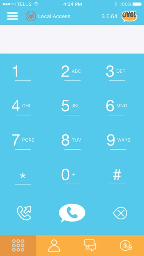 Oye USA is the ultimate application for low-cost Long Distance calls. This dialer simplifies the long-distance calling so nicely and still providing all the flexibility that you may need. No more pins to remember, no access number to dial or phone numbers to remember, not even the speed dial numbers to be remembered or dialed. You can even use Oye USA to make local calls over your internet connection when you are running out of allowed minutes in your wireless plan. Oye USA provides you different calling methods to meet your wireless plan and calling needs. Calling methods include Local Access, Callback and Internet Calling. Oye USA also allows you to transfer your account balance to friends and family in over 110 countries around the globe on their cellular accounts.
