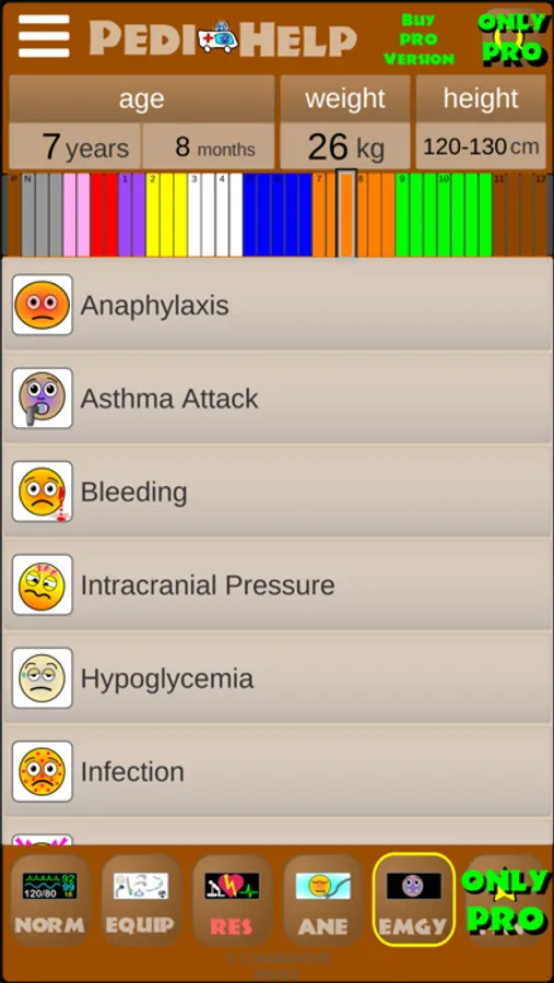 PediHelp is the best assistant-app for pediatric emergencies and anesthesia. The different age groups are marked with the usual color-coding. Just move your fingertips along the color scale. All data is calculated immediately.