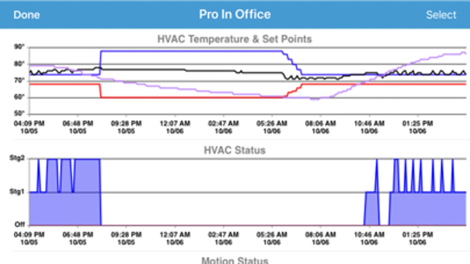 The Hill York Mobile app provides Hill York customers with the ability to remotely monitor and manage the HVAC settings for their facilities. Access to real-time HVAC information and historical graphical data is available through the app.