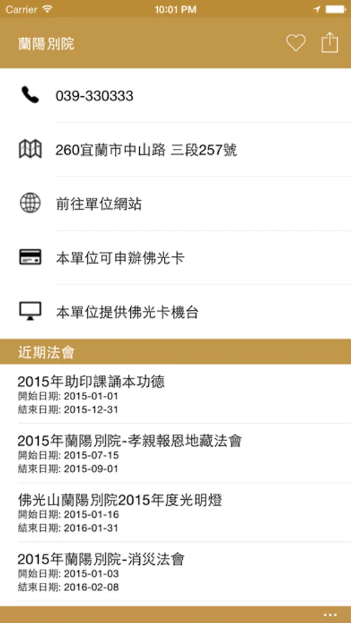 *單位資訊查詢:在地圖中點擊進大頭針吧!進入後可以撥電話、點擊地址導航、瀏覽官方網站、了解單位的佛光卡申辦、機台擺設與近期法會資訊