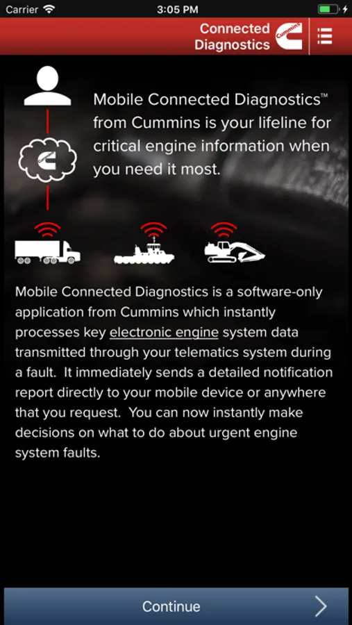 Mobile Connected Diagnostics transforms Cummins engine system fault data into actionable information to enable instant decisions for maximum equipment productivity.