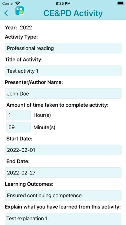 • Information is saved in the QuickQA app until the user is ready to upload it to their CMRITO QA ePortfolio