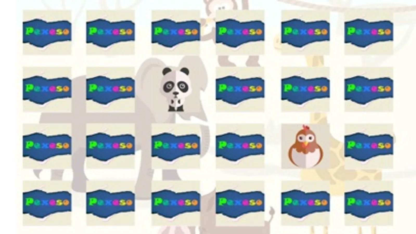 Pexeso is a popular children's game. Princip of the game is simple: Turn any two cards, if they contain the same images these cards will disappear. Remember positions of the pictures and find all the same pictures in the shortest time as possible. Practice your memory and attention, it'll be fun. This game with animals is for kids and also for adults for free.