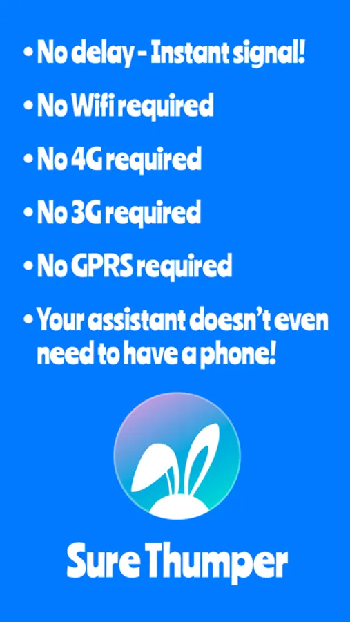 A 'thumper' is a secret device that can transmit information to a performer. Many devices are on the market. This is an app that turns the phone in your pocket into the thumping device.