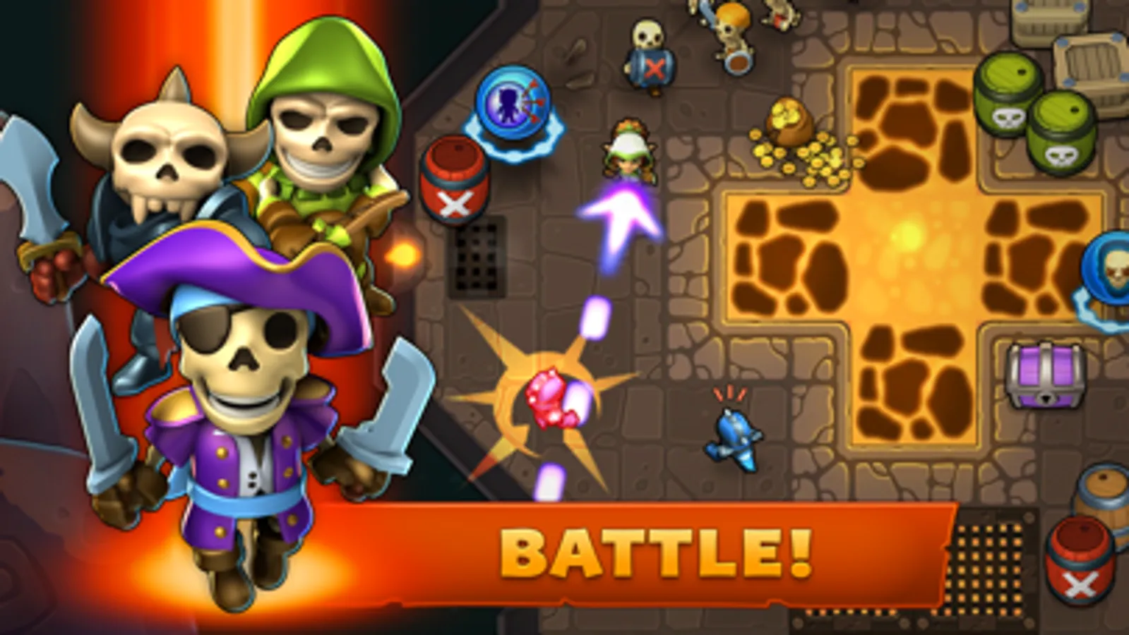 • Battle Cards power-up your character in different ways to make every game unique