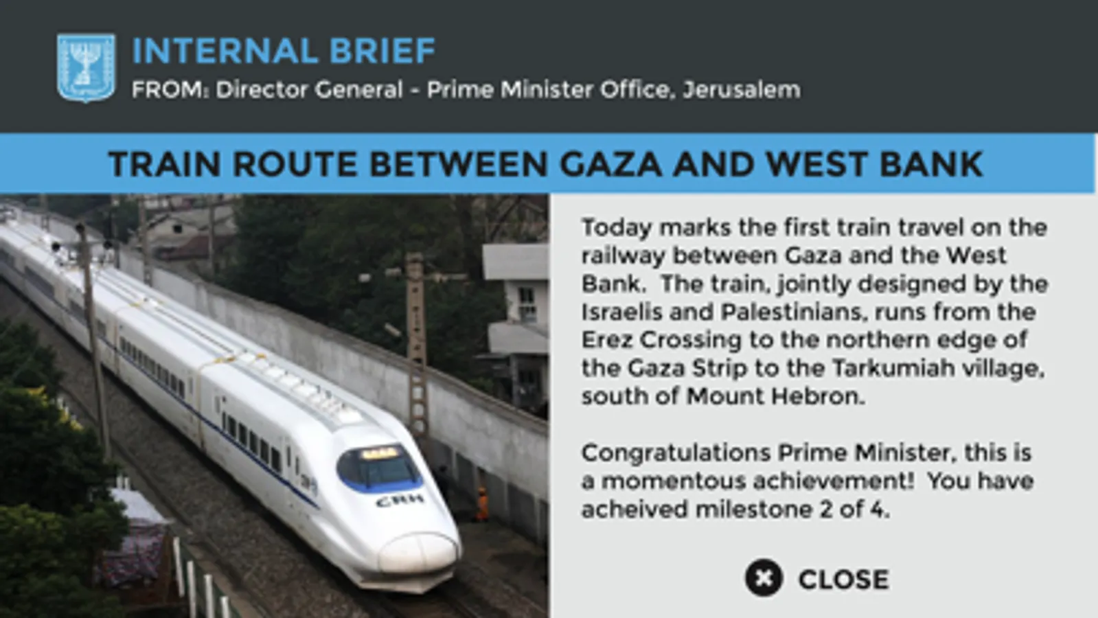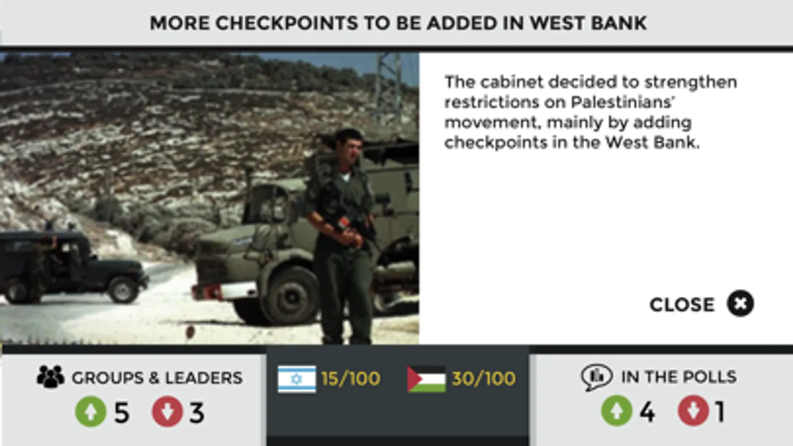 • PeaceMaker is two games in one: play both the role of the Israeli Prime Minister or the Palestinian President.