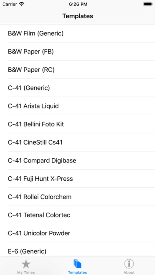 The Darkroom Lab Timer App is an advanced multi-phase timer designed for use with C-41, E-6, ECN-2, RA-4 and B&W photographic processes.