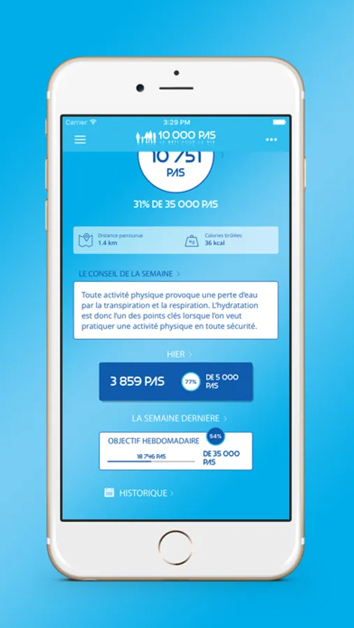 « 10 000 pas, le défi pour la vie » est un programme de prévention de la sédentarité fondé sur le port d’un podomètre électronique connecté à un smartphone. L’objectif est simple : augmenter son activité physique quotidienne en réalisant 10 000 pas par jour, synonyme d’un mode de vie actif.