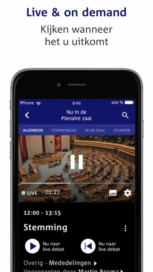 Debat Direct enables you to watch plenary debates and public committee meetings of the House of Representatives of the Netherlands live, anywhere you want. Watch a debate on your smartphone or tablet, on the way or at home.