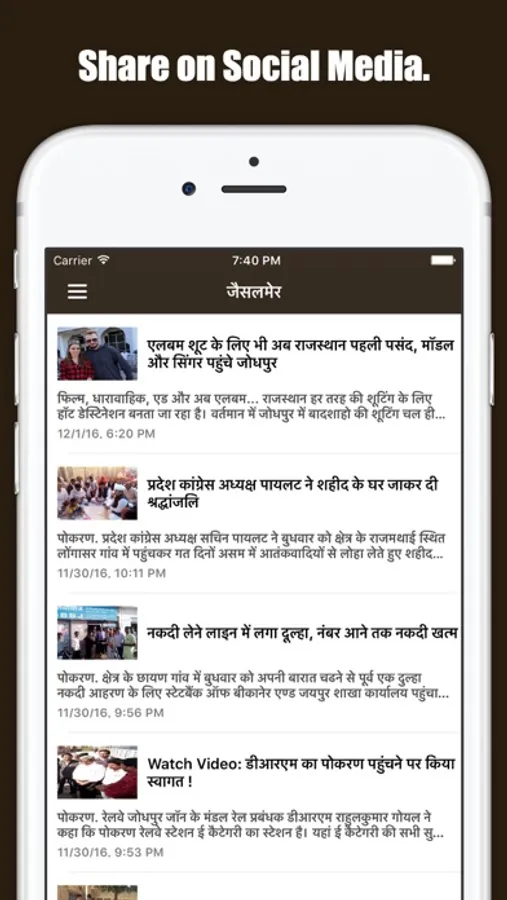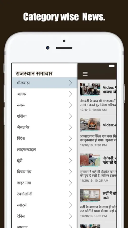 This App covers Latest Hindi News from Politics, World, Sports, Entertainment, Photo, Video, Business and States. This free App gives you the flexibility and ease of reading Hindi News from Rajasthan daily hindi news.
