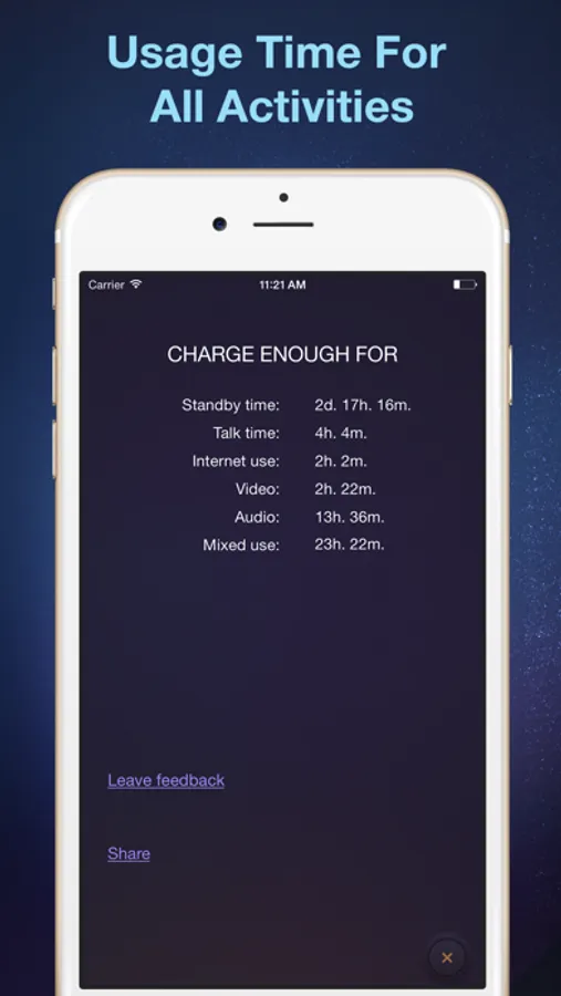 Detailed info about remaining time. Tips & Hints about saving your battery.