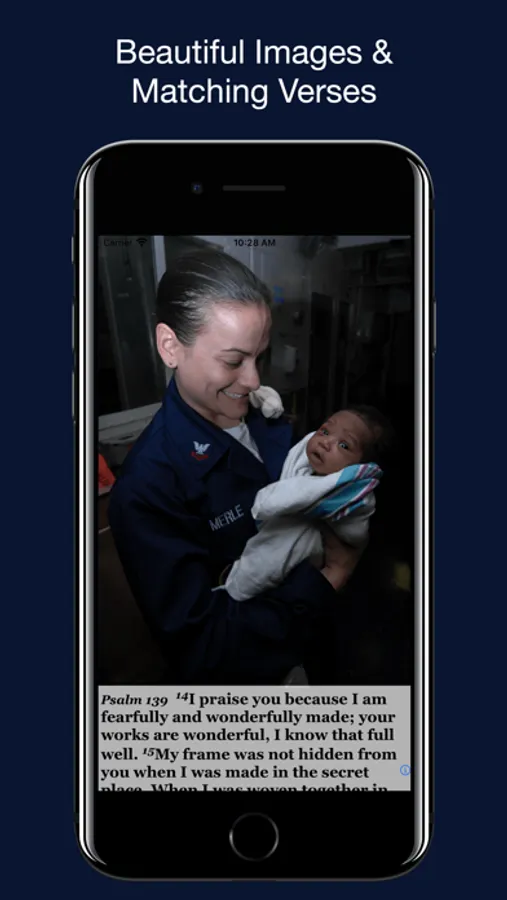 For over 3,000 years the Psalms have been a source of spiritual encouragement and comfort, and are as relevant today as when they were written. Verses from the Psalms are displayed and matched with images from Navy photos in a tribute to our military brothers and sisters. For devotional use or a quick spiritual lift during a busy day, this app will be a blessing to you, plus you can share it with your friends via Facebook or email. Use the notification feature for an automatic daily reminder.