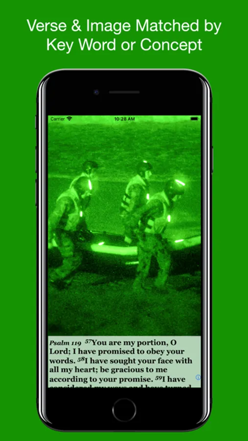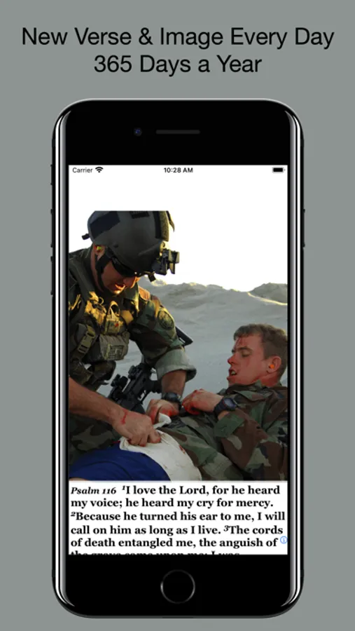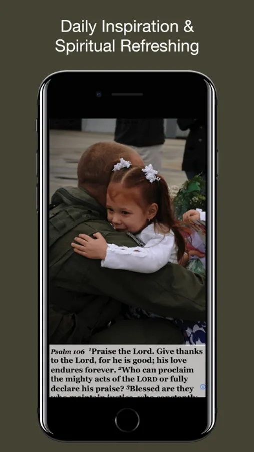 Here's a review from Joli94: “This app is geared appropriately to the military audience. Photos are inspiring and coordinate greatly with the Psalm chosen for the day. Thank you for this wonderful technology - may its use be blessed by all whom it reaches!”