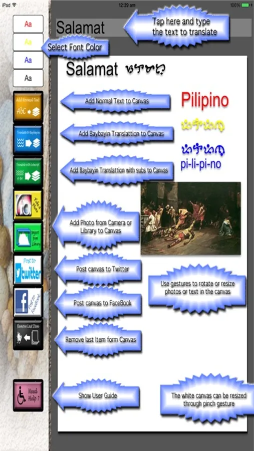 And so here it is! This is an app for Baybayin that allows you to post Baybayin stuffs to Twitter and Facebook to let everyone else, through social media, know the once proud scripts that our ancestors have built our beautiful archipelago with.