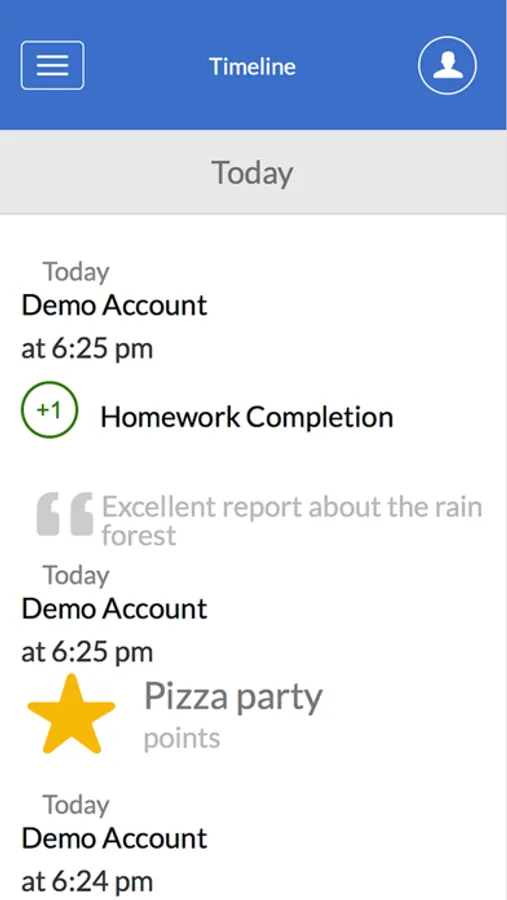 You will be able to see all of the points, associated comments, and rewards your student earns throughout the day in the timeline as recorded by the teachers.