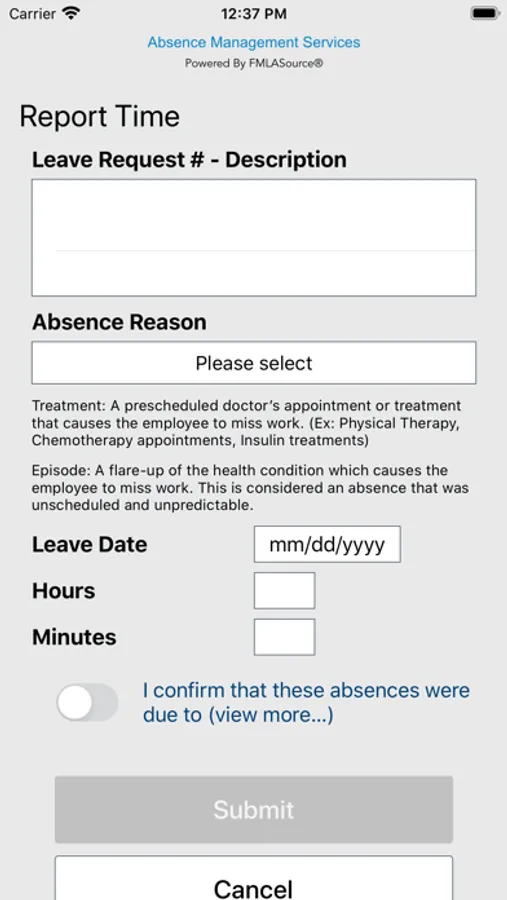 • Downloading forms and documents associated with your leave