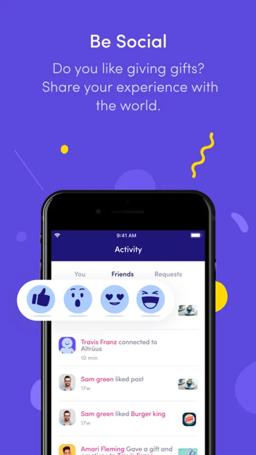 • Be social by sharing your gifting experiences with friends and family and letting your network interact with them.