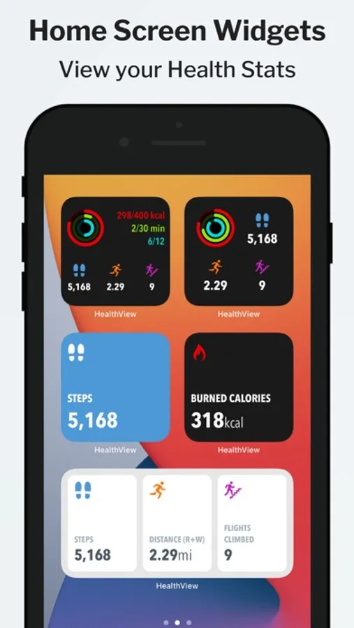 NOTE: HealthView reads data only from Apple Health app. No data is being sent outside of your device. Health app access required.