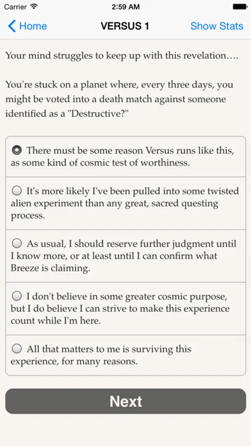 "VERSUS: The Lost Ones" is a thrilling 123,000-word interactive novel, the first in a new series, by Zachary Sergi, author of our best-selling "Heroes Rise" trilogy. Your choices control the story. It's entirely text-based--without graphics or sound effects--and fueled by the vast, unstoppable power of your imagination.