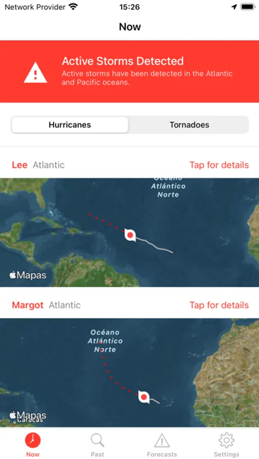 - Track specific hurricanes and receive notifications every time they are updated just by pressing the "+" button!