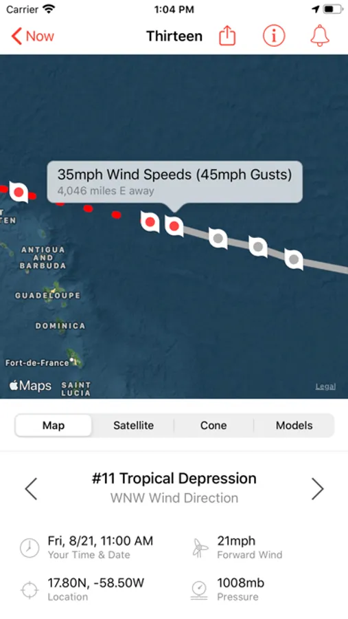 - Track specific hurricanes and receive notifications every time they are updated just by pressing the "+" button!