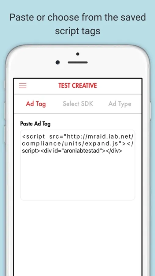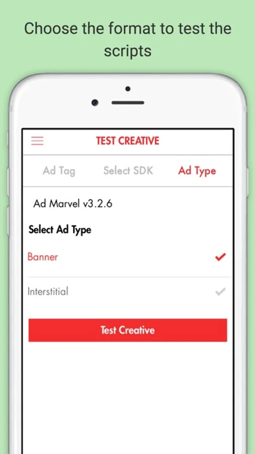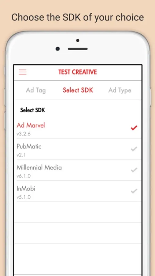 The app allows you to test ad creatives on several Ad SDKs in minutes.