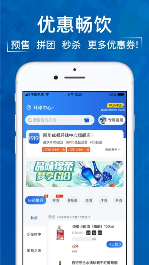 《大额优惠券》领券满300减30,还有半价券限量抢,美酒任你购!