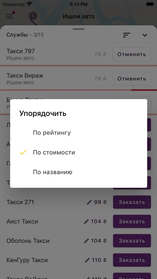 Приложение "Такси Украины" позволяет сравнивать стоимость и создавать онлайн заказ сразу в нескольких службах такси.