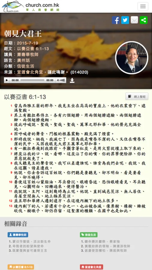 年份:按講道年份列出累積二十多年的錄音訊息。