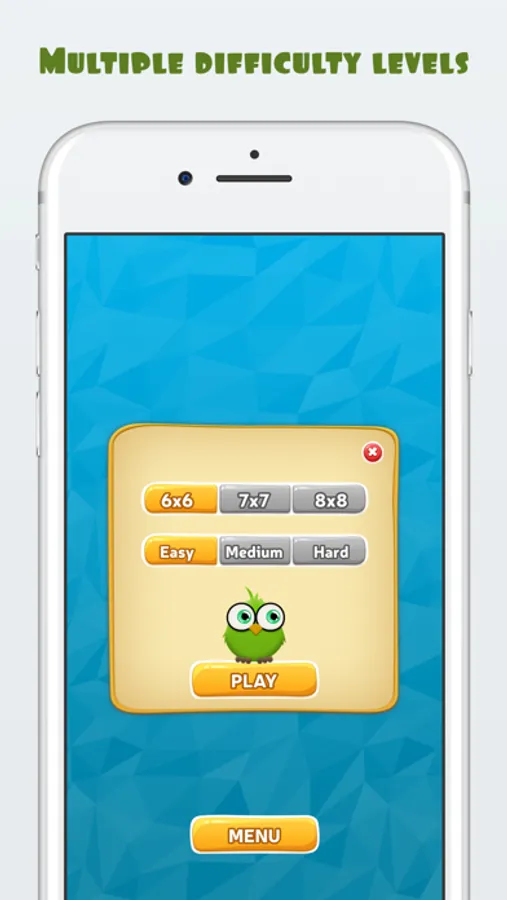 You can choose from one of three available boards - 6x6, more difficult 7x7 and the most challenging 8x8.