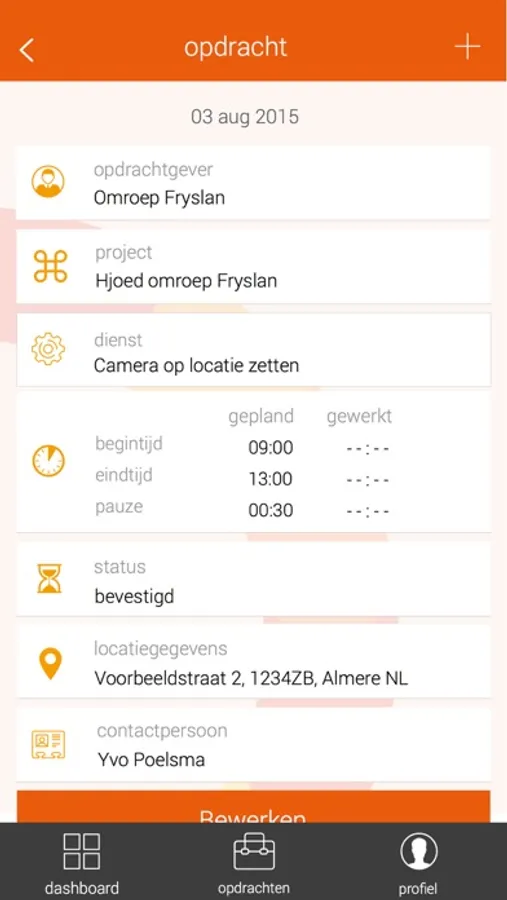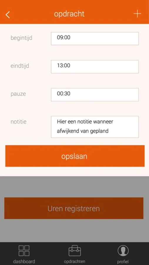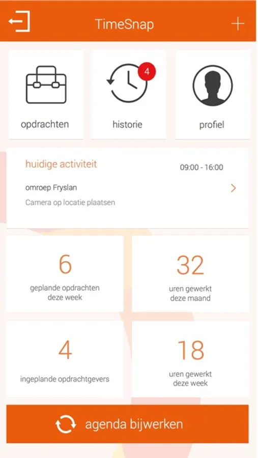 Na uitvoer van de werkzaamheden kan de medewerker gewerkte uren, genoten pauze en een toelichting invoeren in de bestaande opdracht via ‘Historie’. Deze gegevens worden vervolgens weer gekoppeld aan de planningssoftware, waardoor handmatige invoer hierin overbodig is.