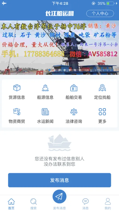 本平台设货源信息,船源信息,船舶交易,招聘求职,船舶档案,公司档案,水运新闻等栏目