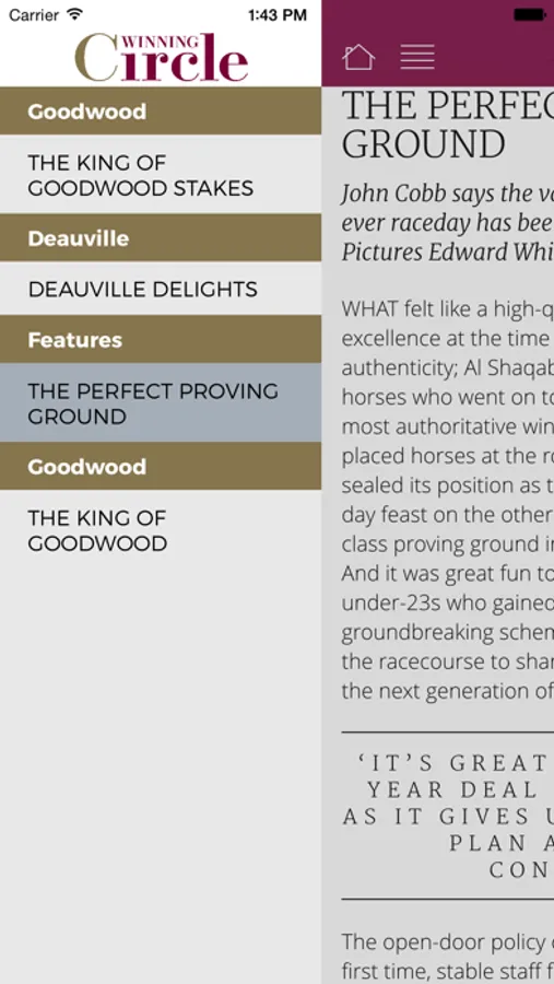 Each month there will be interviews with the thoroughbred masters, both trainers and jockeys, as well as profiles of the leading equine players and vivid reporting in words and pictures from the world's major racing festivals.