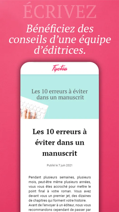 Le plus : bénéficiez de l'encadrement exclusif de notre équipe d'éditrices qui vous prodiguera des conseils : articles de blog, masterclasses, commentaires personnalisés sur votre histoire...