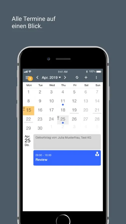 - Kalender Abgleich mit allen Terminen in den iPhone Kalender