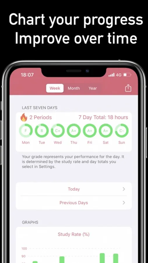 - Colourful timers indicating how efficient your study time is. Green if you meet your goals & red if you don't.
