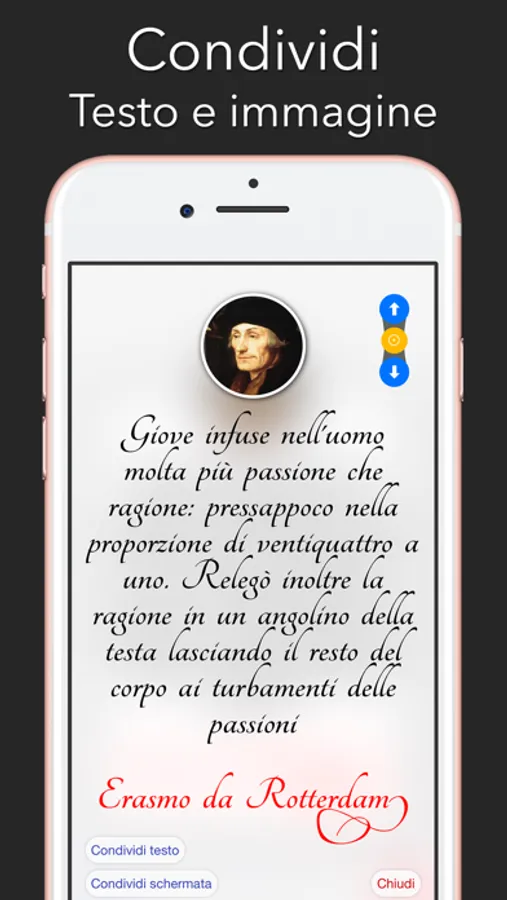 Puoi condividere le frasi sia come testo che come immagine con tutte le app che supportano la condivisione e su tutti i social network e chat