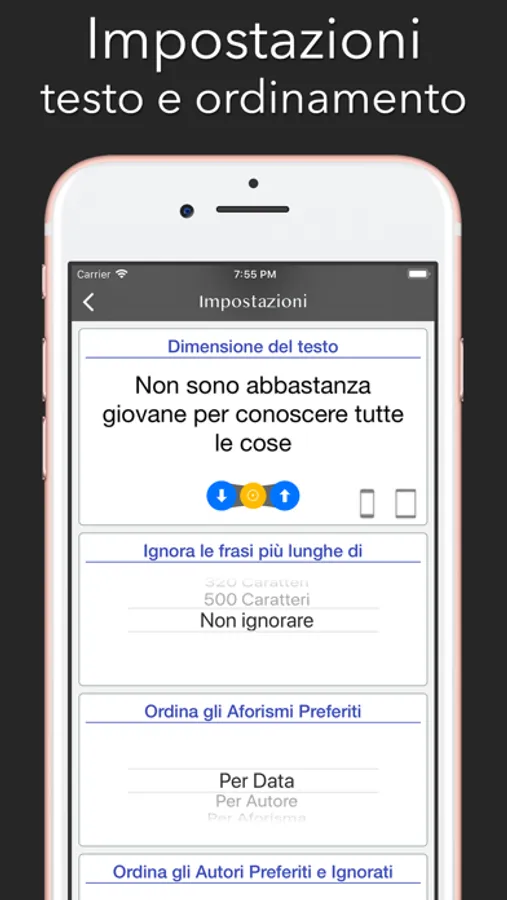 ~ Puoi scegliere la dimensione del testo (per una migliore esperienza con gli iPad)